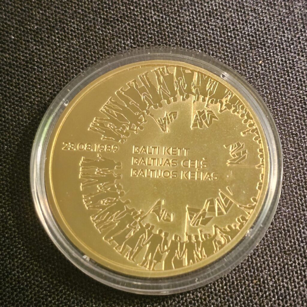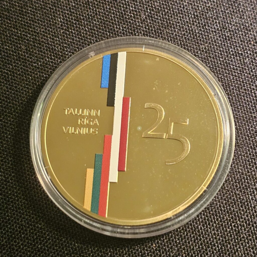 Kaunis ja sümboolne meenemünt, välja antud 2014. aastal Balti keti 25. aastapäeva puhul.
