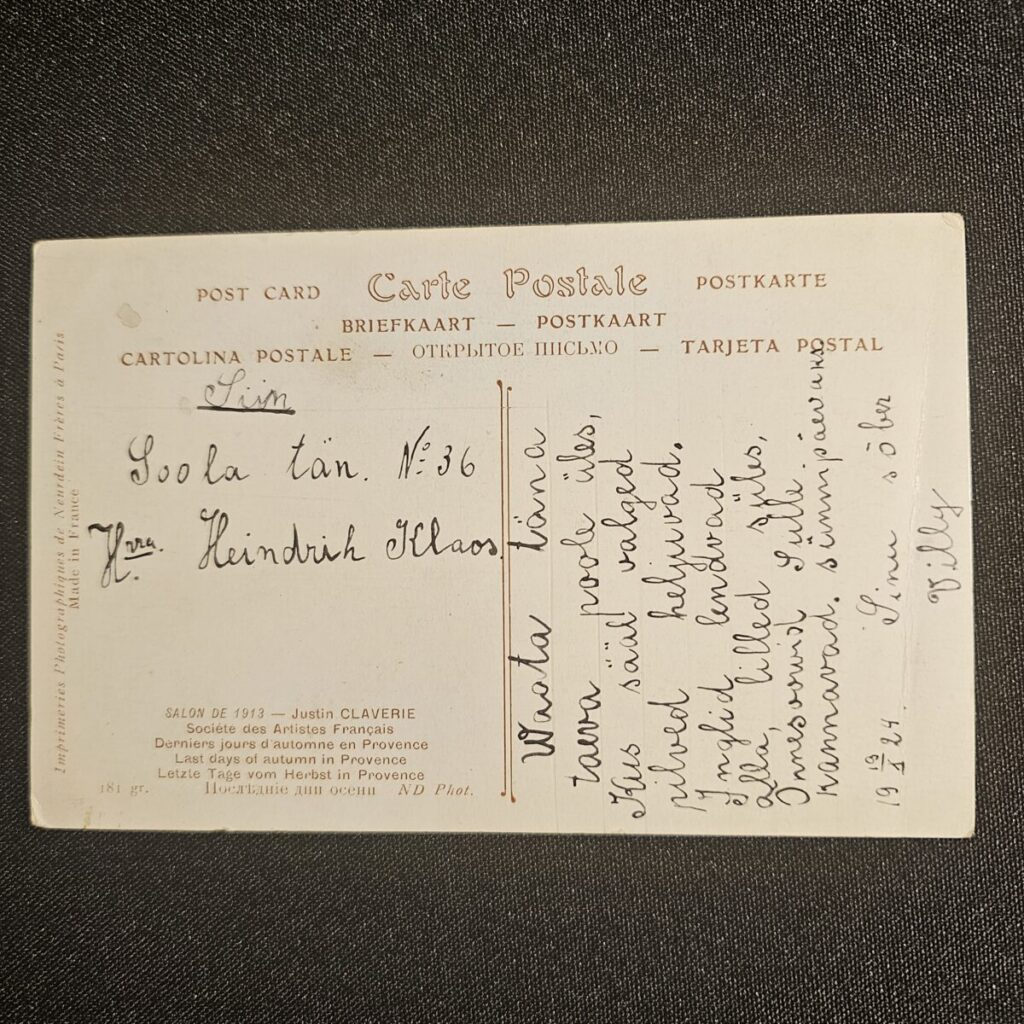 Antikvaarne kunstipostkaart „Sügise viimased päevad Provence’is“ (1913 / saadetud 1924)