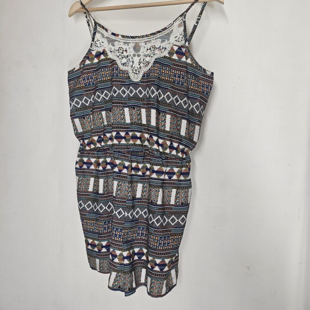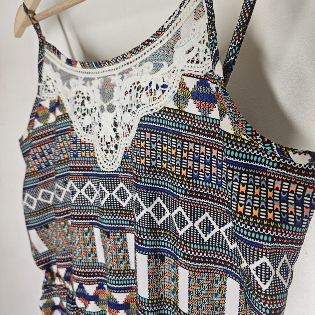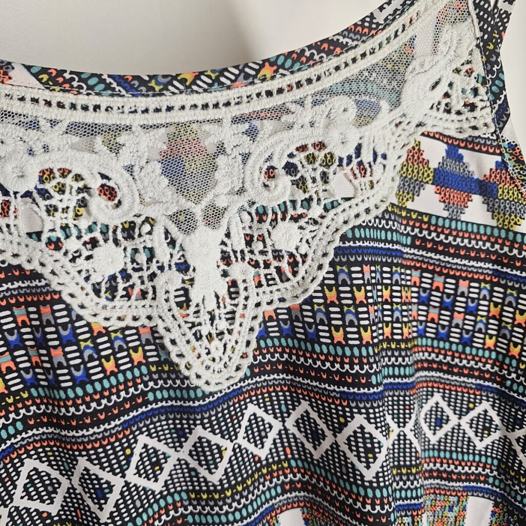 Etno-mustriline kangas ja romantiline pits kaelusel loovad vaba, kuid šiki suvetunde.