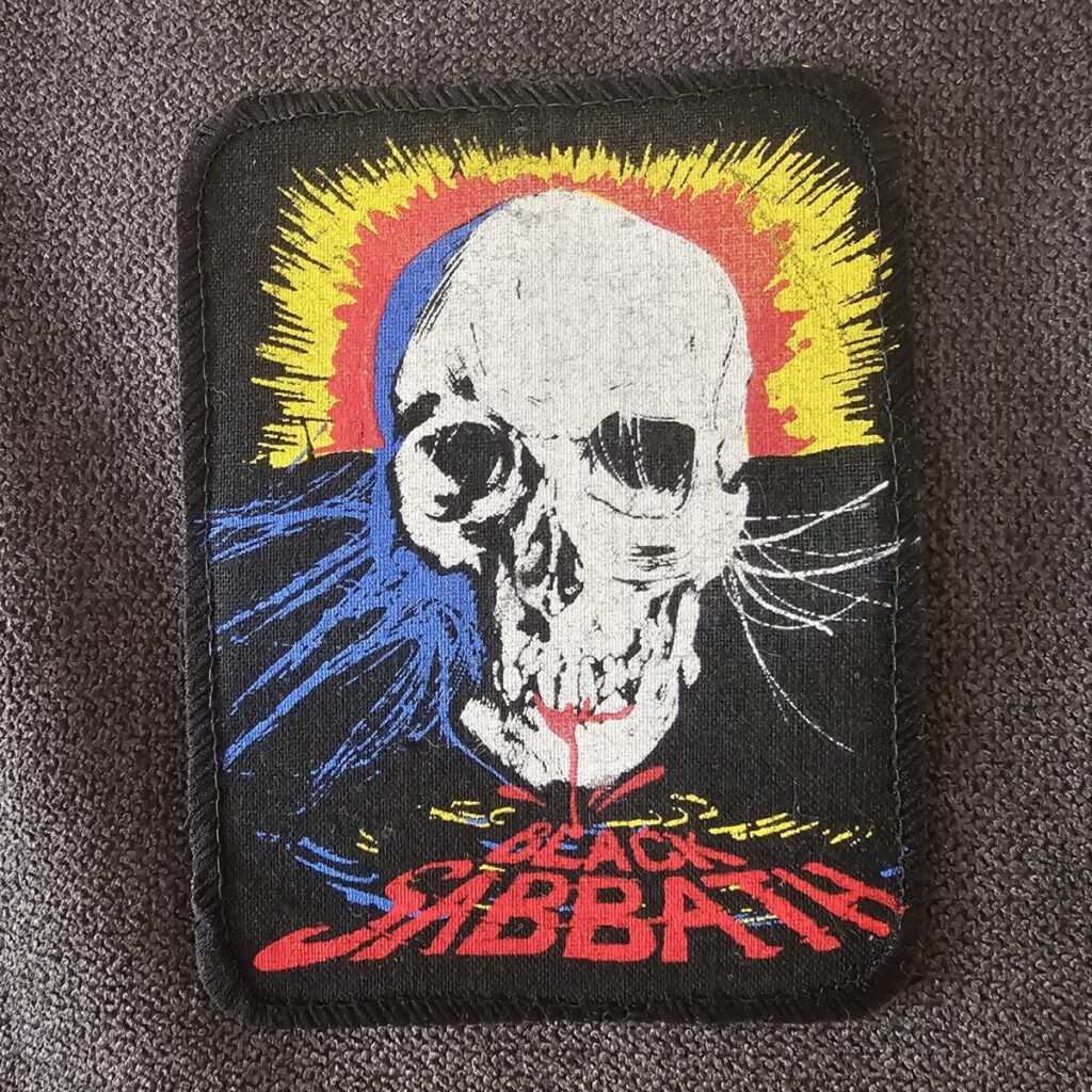 Black Sabbathi embleem. Kujutis koljust verejoonega ja psühhedeelsed värvid (punane, sinine, kollane). Black Sabbath kangaspatch / õmmeldav embleem