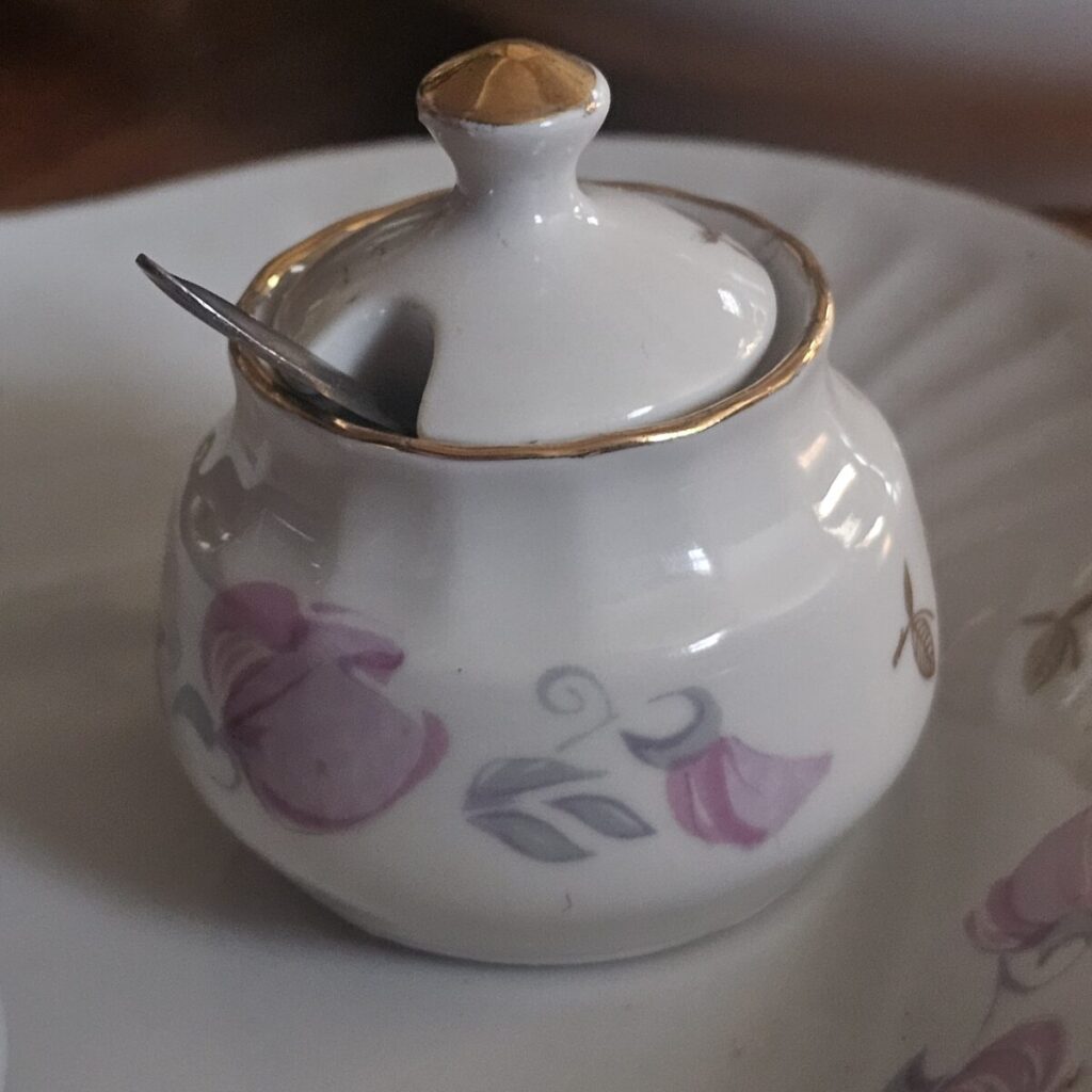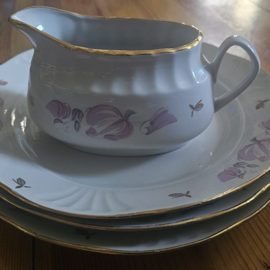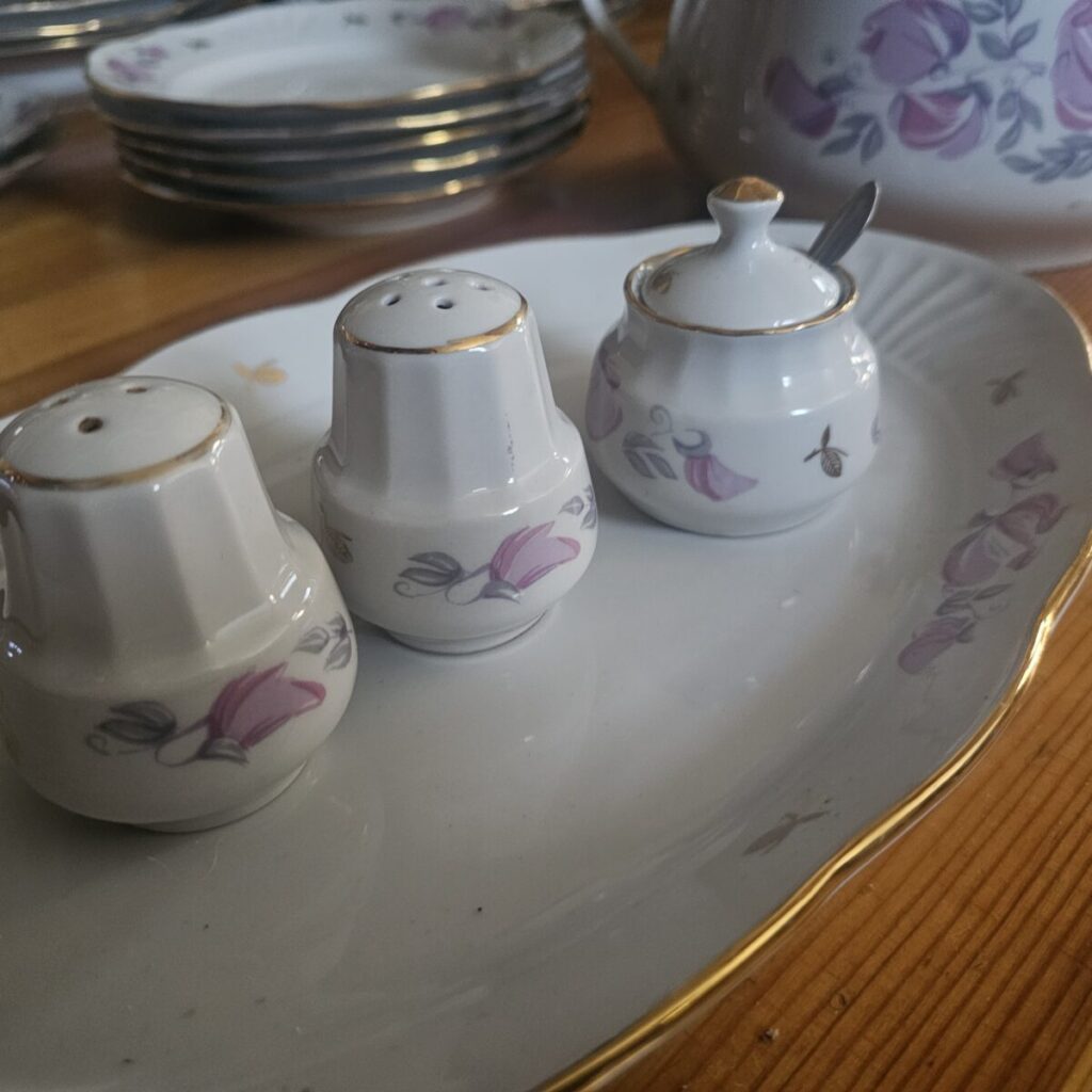 Valge portselan kuldse servaga ja õrnade roosakaslillade õiemotiividega – ajatu ilu, mis toob iga laua ellu nostalgilist soojust ja elegantsi.