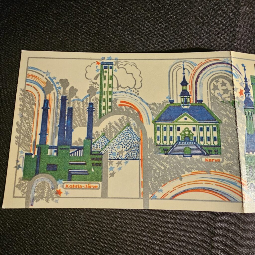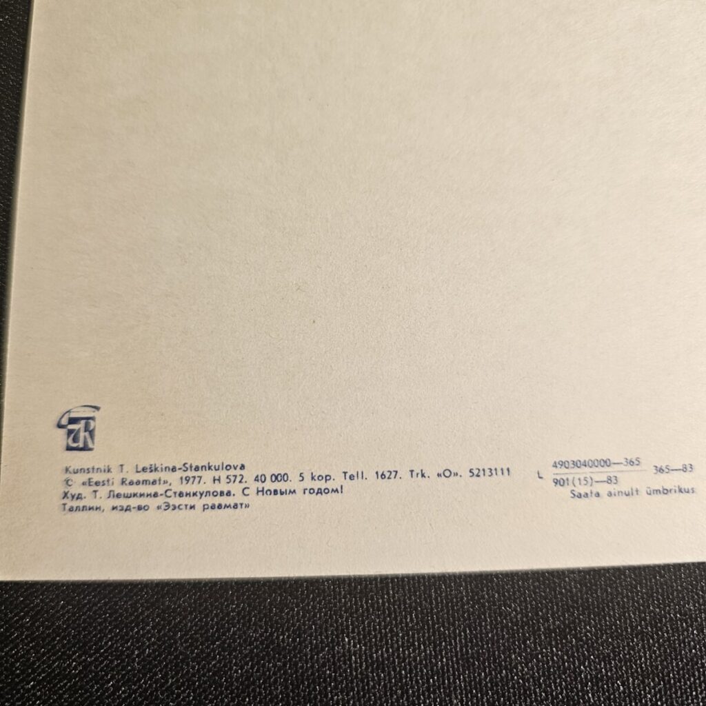 Disain peegeldab 1970ndate ENSV graafilist optimistlikku stiili – ajastu, mil kaartidega saadeti siiraid soove üle kogu liidu.