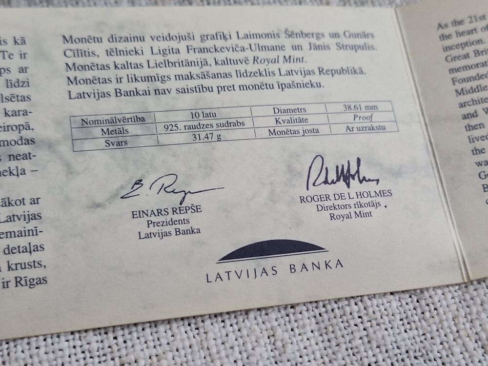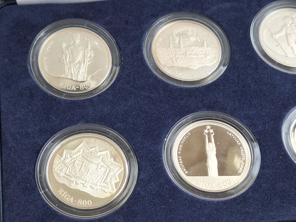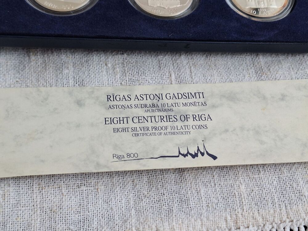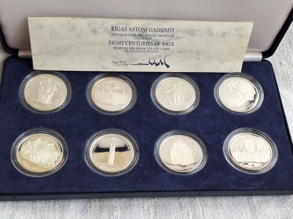 Hõbe RIGA 800 komplekt 8 münti 10 LATS Läti 1995-1998 a.