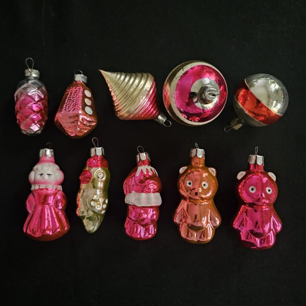 Kümnest originaalsest nõukogudeaegsest jõuluehtest koosnev särav komplekt.