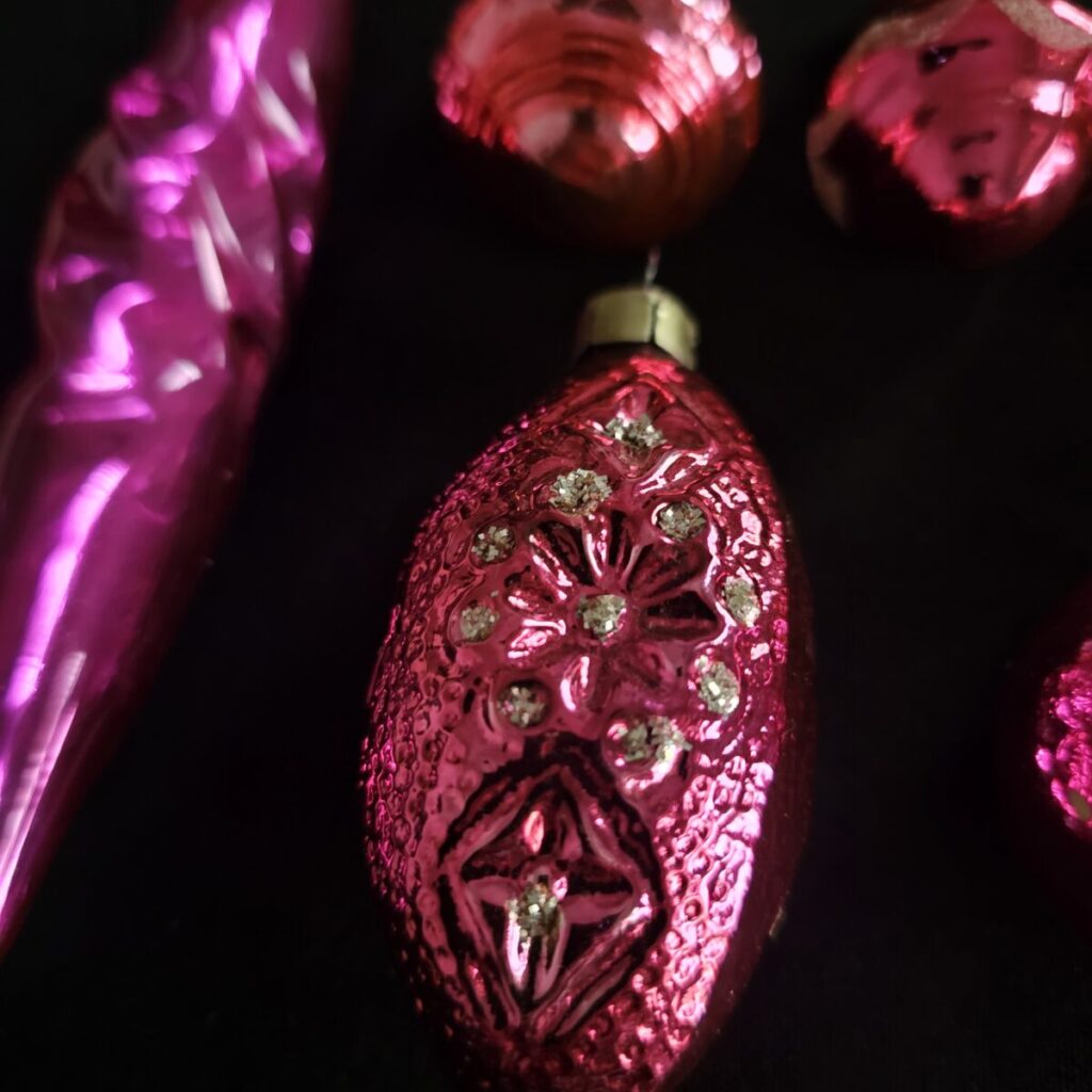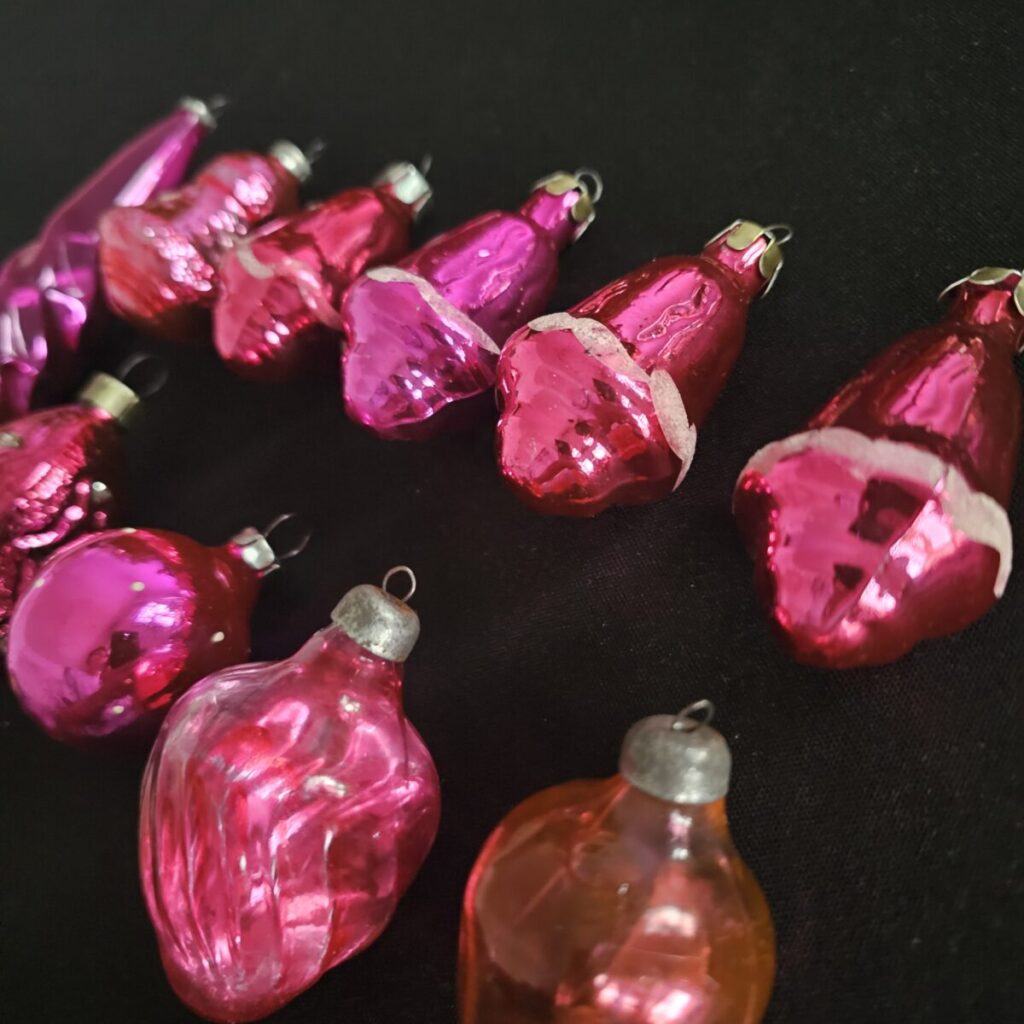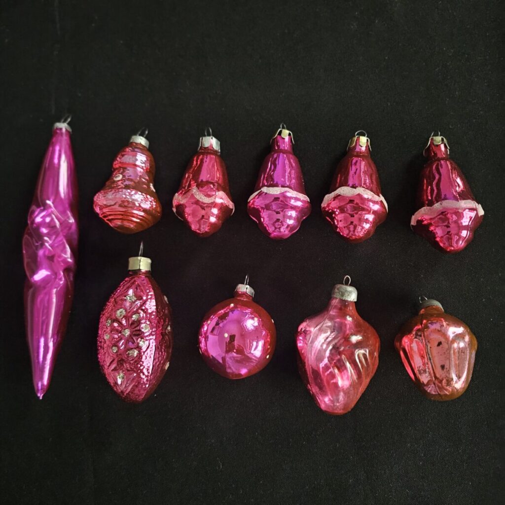 Jõuluehete komplekt – roosakaspunane sära (10 tk, 1960.–70. aastad)