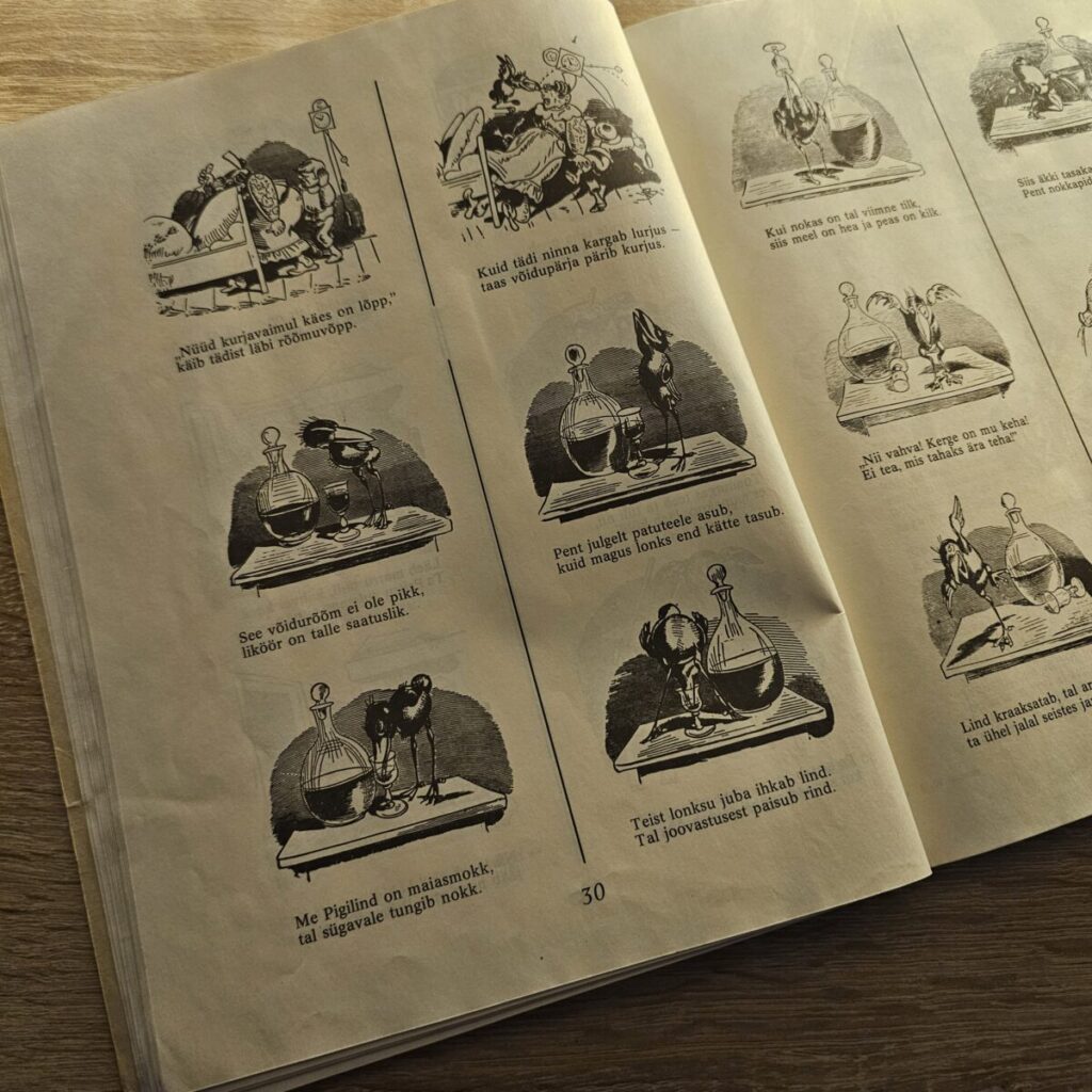 Mustvalged illustratsioonid autori enda joonistustega.