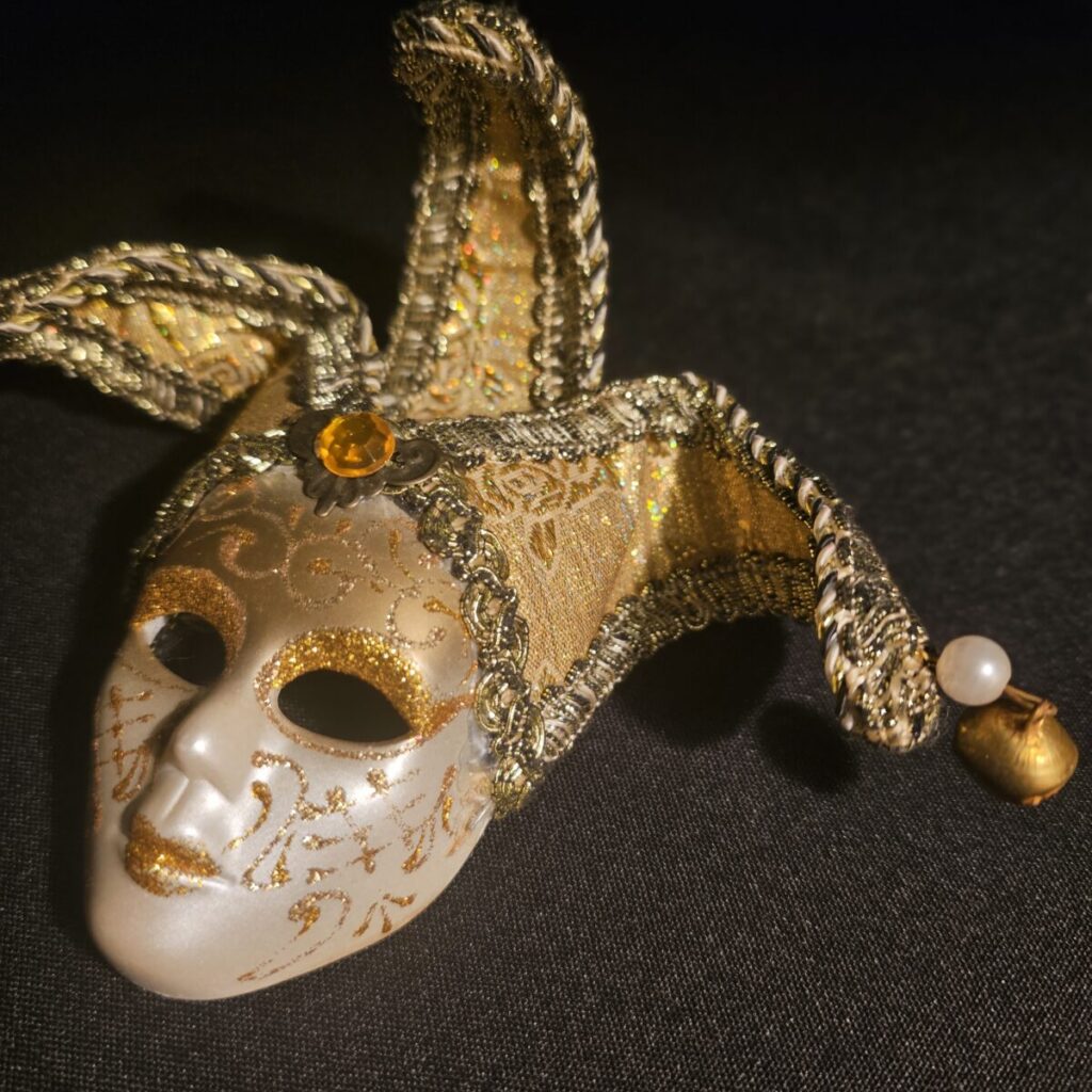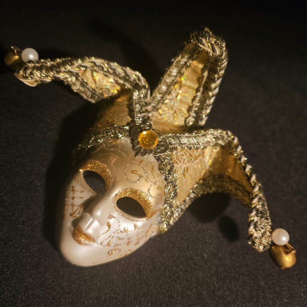 Miniatuurne Veneetsia mask – kuldne narr