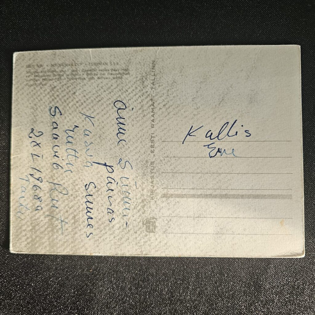 Tagaküljel käsitsi kirjutatud sõnum ja kuupäev 28. VI 1968 – ehe ajastuhetk tollasest elust ja reisimisest.