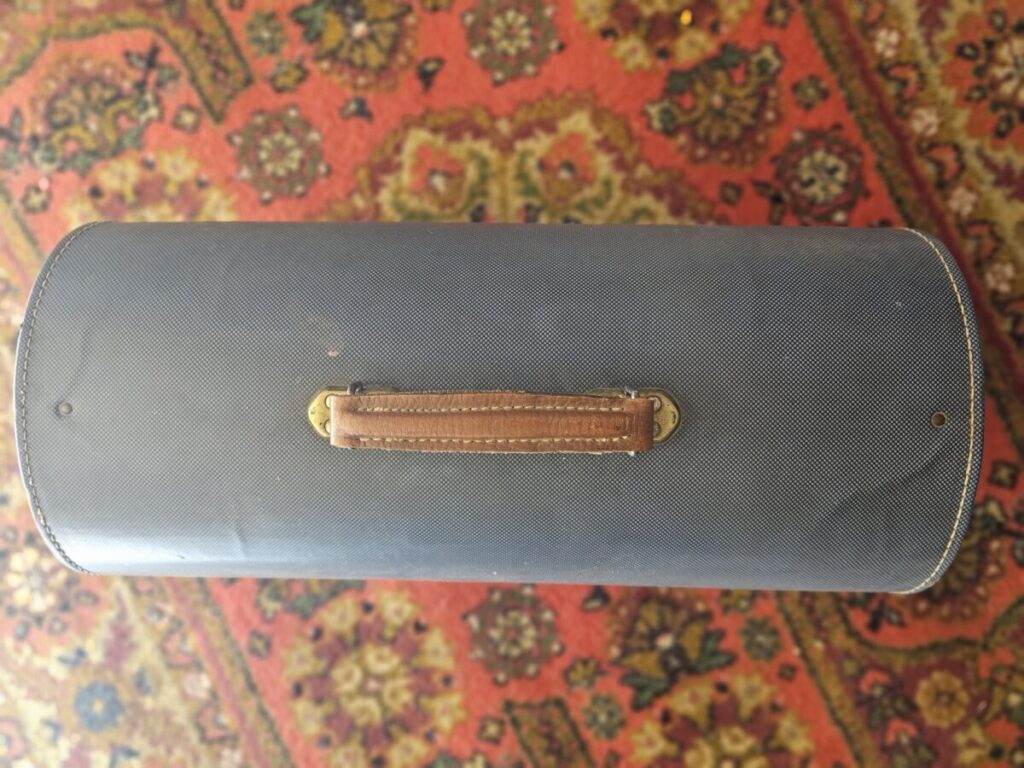 Metallkorpus, puidust alus ja originaalne kaitsekohver – tõeline ajastu sümbol!