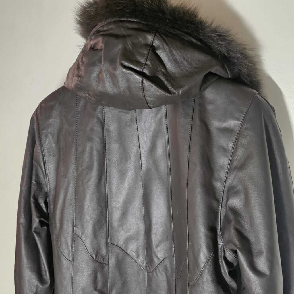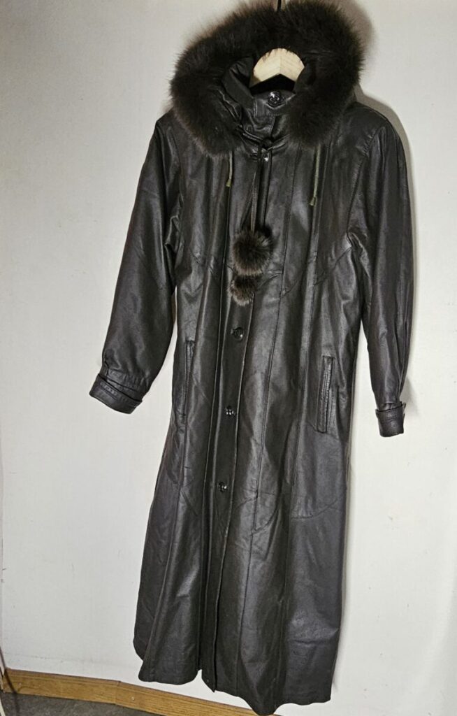 Elegantne ja vastupidav täispikk naiste nahkmantel, mis ühendab ajatu stiili ja praktilisuse.