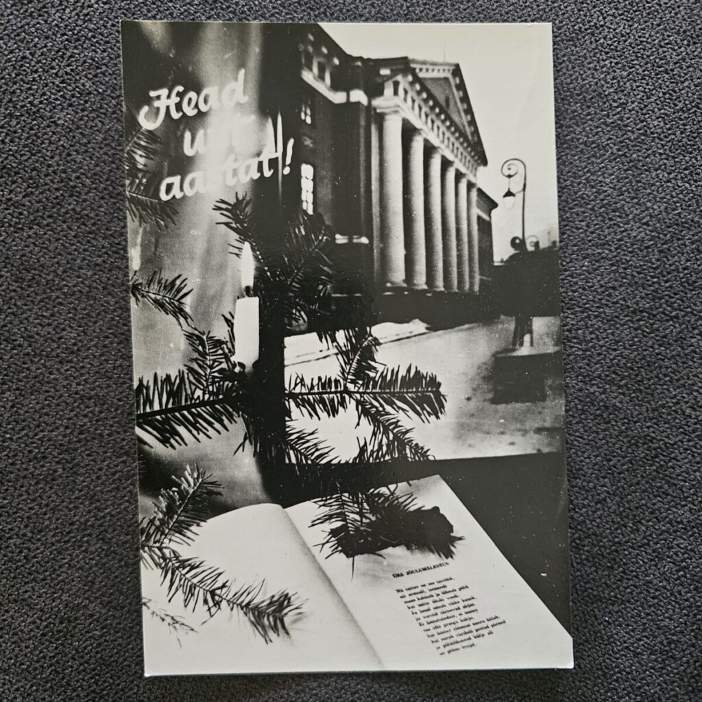 Kaunis ja nostalgiline ENSV perioodi Tartu-teemaline uusaastapostkaart, mis ühendab akadeemilise väärikuse ja pühade soojuse.