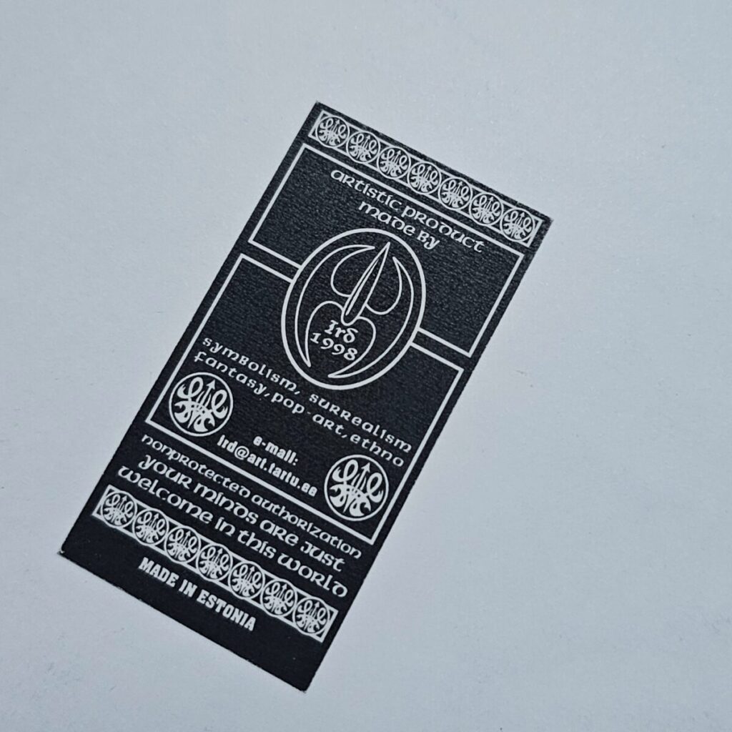 Trükitud kvaliteetsele paberile, autorimärgise ja templi all.