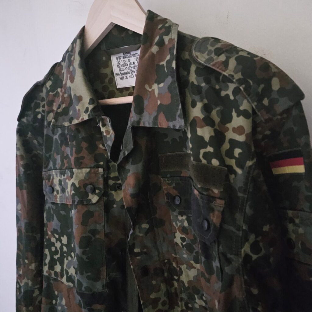 Klassikaline Flecktarn-mustriga välivorm — tuntud oma praktilisuse ja vastupidavuse poolest.