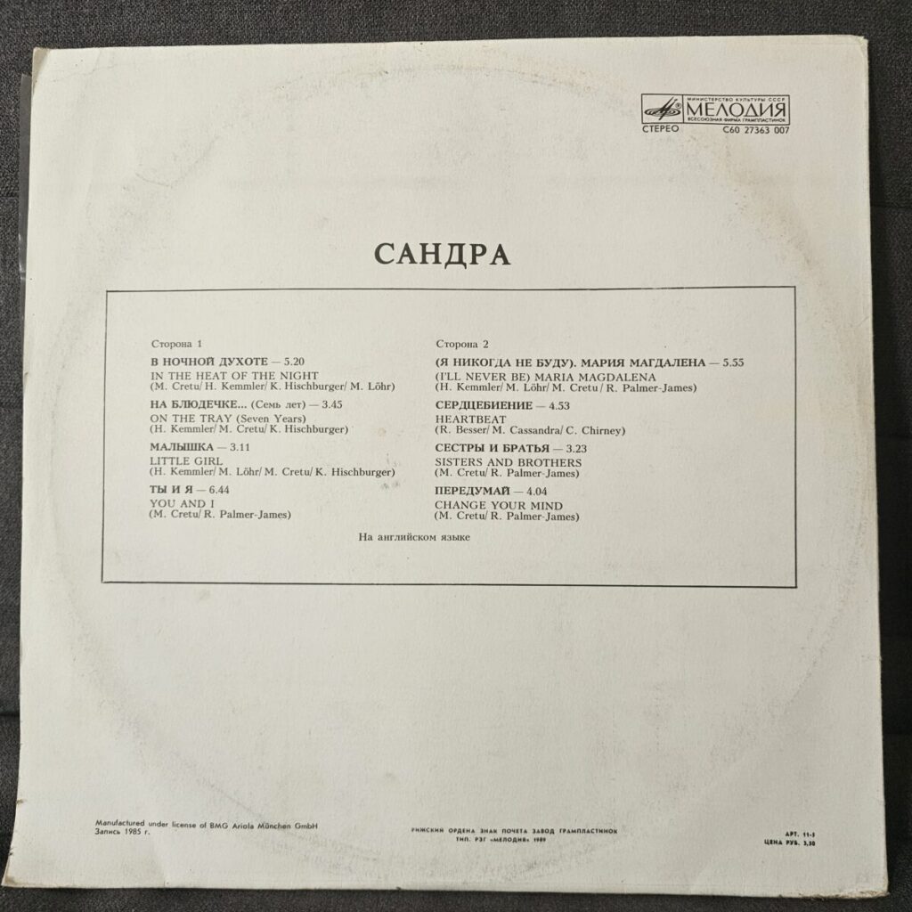 Sandra – The Long Play (plaadifirma Мелодия, 1986)