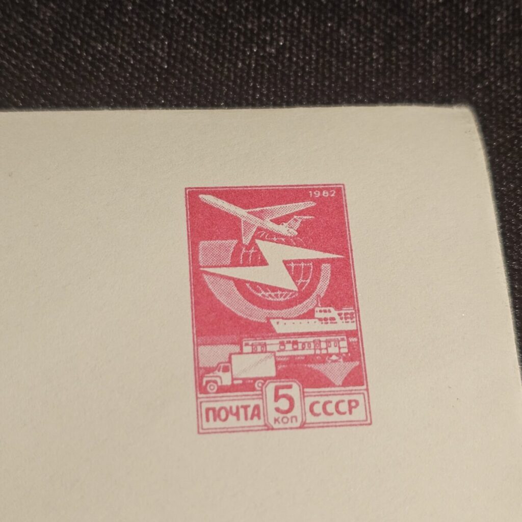 Nominaal: 5 kop. (eeltrükitud mark, kujutatud lennuk, laev ja auto)